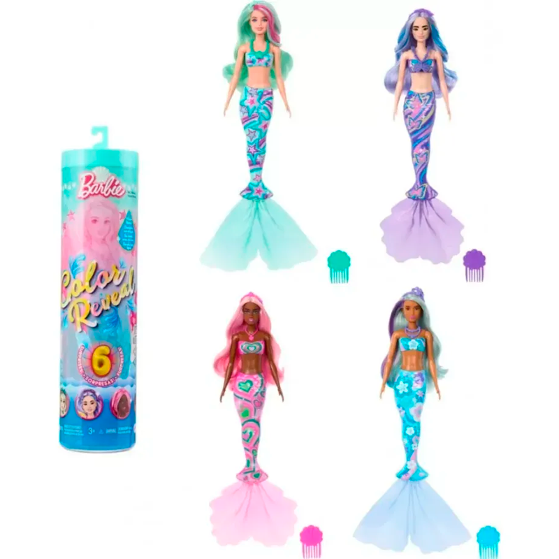 Descubre la magia del océano con la Muñeca Barbie Sirena Color Reveal HTH45 de Mattel. Con su diseño articulado, permite una variedad de poses y juegos creativos, mientras que su color revelador añade un elemento sorpresa que mantendrá a los pequeños entretenidos.