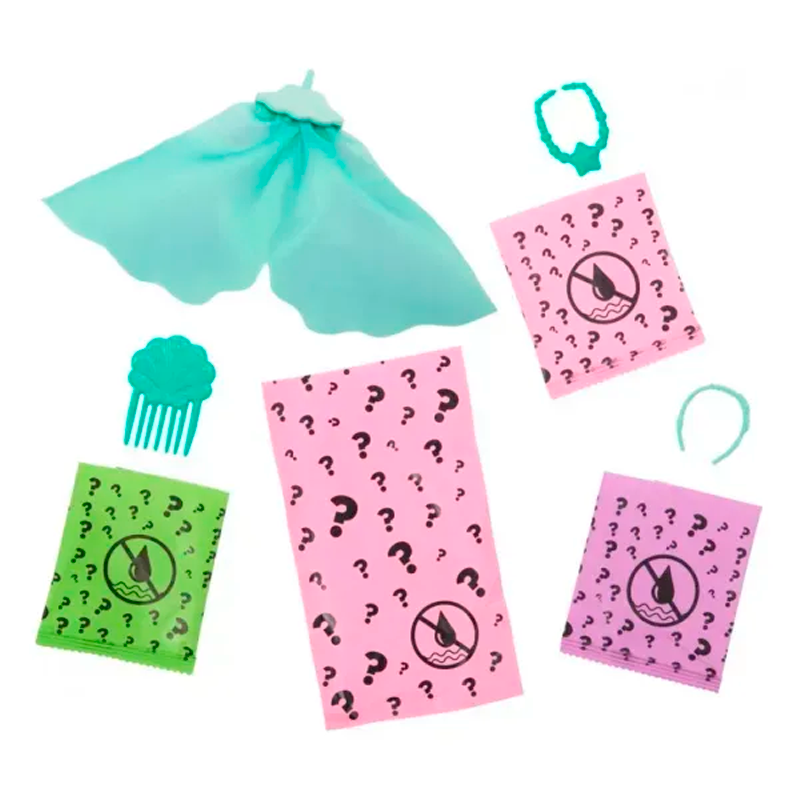 La muñeca incluye una aleta de sirena, un collar, un cepillo y una pequeña esponja, lo que la convierte en un conjunto ideal para fomentar la imaginación. Al sumergirla en agua, los niños podrán descubrir los colores ocultos, haciendo de cada juego una experiencia única y emocionante.