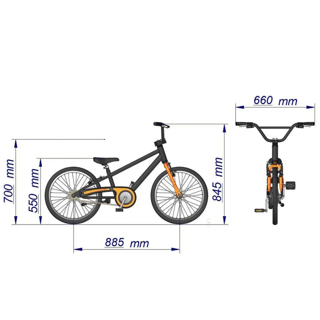 Incluye pie de descanso exclusivo, protector de cadena y mesa de dirección con ajuste de ángulo del manillar, permitiendo al ciclista mantener la postura correcta y adaptarse al crecimiento.