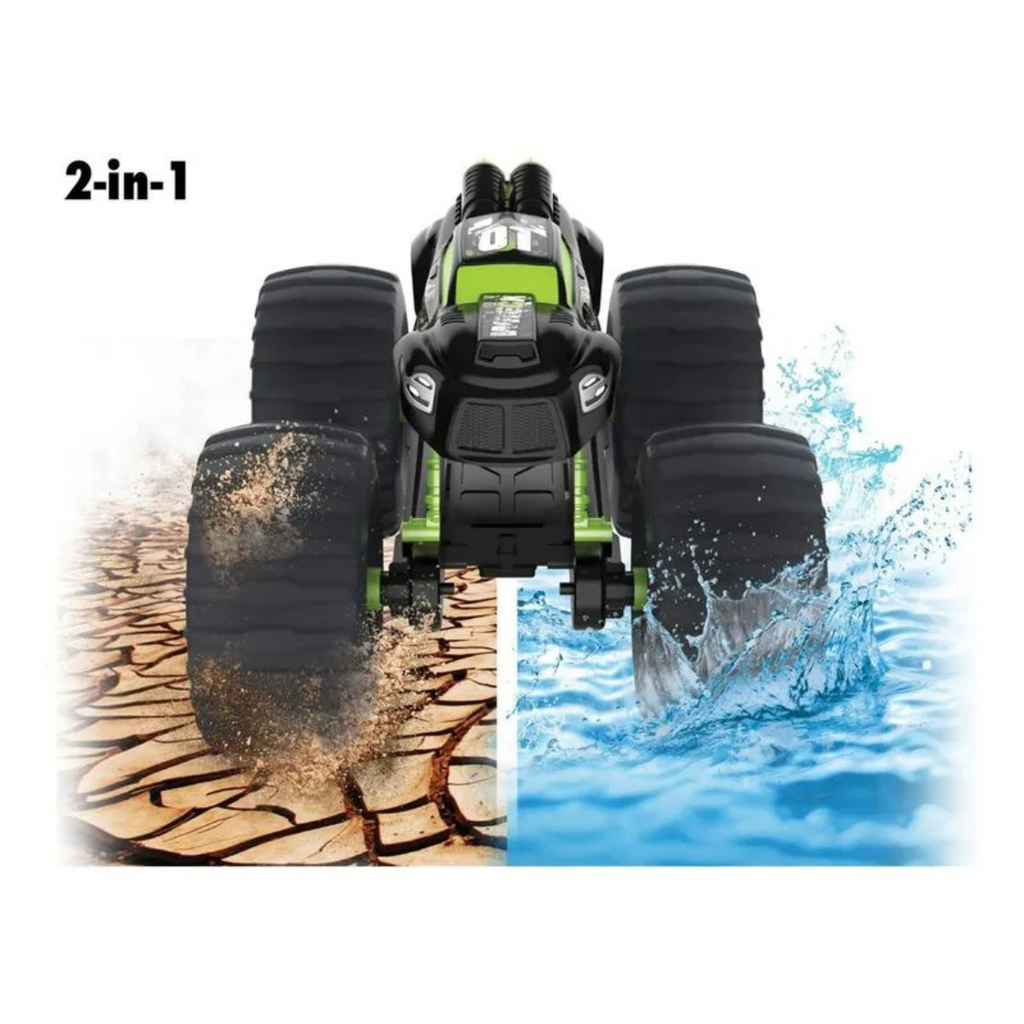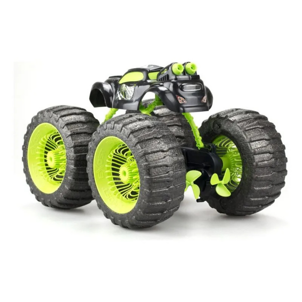 TODOTERRENO: ¡Gracias a la tecnología patentada de suspensión integrada en las ruedas, el coche Exost puede enfrentarse a cualquier terreno, realizar fácilmente giros de 360 grados y superar cualquier obstáculo! ANFIBIO: Puede utilizarse en todo tipo de terrenos, incluso en el agua, gracias a las hélices propulsoras situadas en la parte trasera del coche y a su chasis resistente al agua. TECNOLOGÍA DE 2,4 GHZ: Juego de interiores y exteriores con hasta 10 jugadores simultáneamente sin crear interferencias. BATERÍA RECARGABLE: Cable USB suministrado para recargar la batería del coche. CARACTERÍSTICAS TÉCNICAS - Coche: batería recargable incluida/Control remoto: 3 pilas AAA (no incluidas). Dimensiones del producto: 34 (L) X 27 (P) X 22,5 (A) cm. Alcance: 30 m máx. A partir de 5 años. Los precios de éste sitio web son exclusivos para compras online y no necesariamente coinciden con los precios en el local.