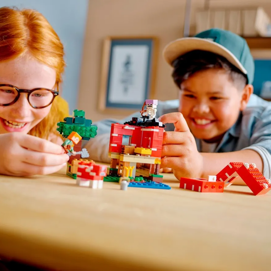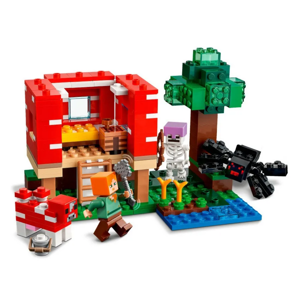 Lleva a los jugadores de Minecraft a otra dimensión con el práctico set LEGO Minecraft The Mushroom House (21179) con infinitas posibilidades de juego creativo dentro y fuera de la divertida casa de juguetes. Los niños pueden ser creativos en la casa de hongos gigante. Sus paredes y techo se levantan para facilitar el acceso a la mesa de trabajo y los muebles. Afuera, el héroe de Minecraft Alex usa un tazón para recolectar sopa de la vaca mooshroom. Pero los planes cambian cuando un jockey araña esqueleto arrasa la escena. ¡Este juguete para niños mayores de 8 años tiene mucho que ofrecer! Los sets LEGO Minecraft brindan a los jugadores una nueva forma de disfrutar de su juego favorito, con personajes, escenas y características que cobran vida con una mezcla imaginativa de piezas y ladrillos LEGO. ¡Los juguetes de construcción de Minecraft con detalles auténticos, junto con características geniales y accesorios divertidos del juego más vendido son una idea perfecta para un regalo de cumpleaños o un regalo de Minecraft para niños y todos los fanáticos de los juegos sin importar su edad! Mide más de 4 pulg. (10 cm) de alto, 5 pulg. (13 cm) de ancho y 5,5 pulg. (15 cm) de profundidad. Contiene 272 piezas.. Los precios de éste sitio web son exclusivos para compras online y no necesariamente coinciden con los precios en el local.