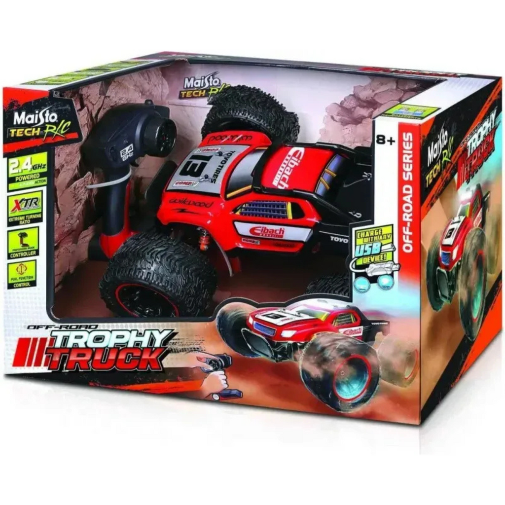 Descubre la emocionante experiencia de la velocidad y la aventura con el Maisto Off Road Trophy Truck a Radio Control en vibrante rojo. Diseñado especialmente para entusiastas de todas las edades a partir de 8 años, este vehículo a control remoto combina un diseño robusto con la agilidad necesaria para conquistar terrenos desafiantes.