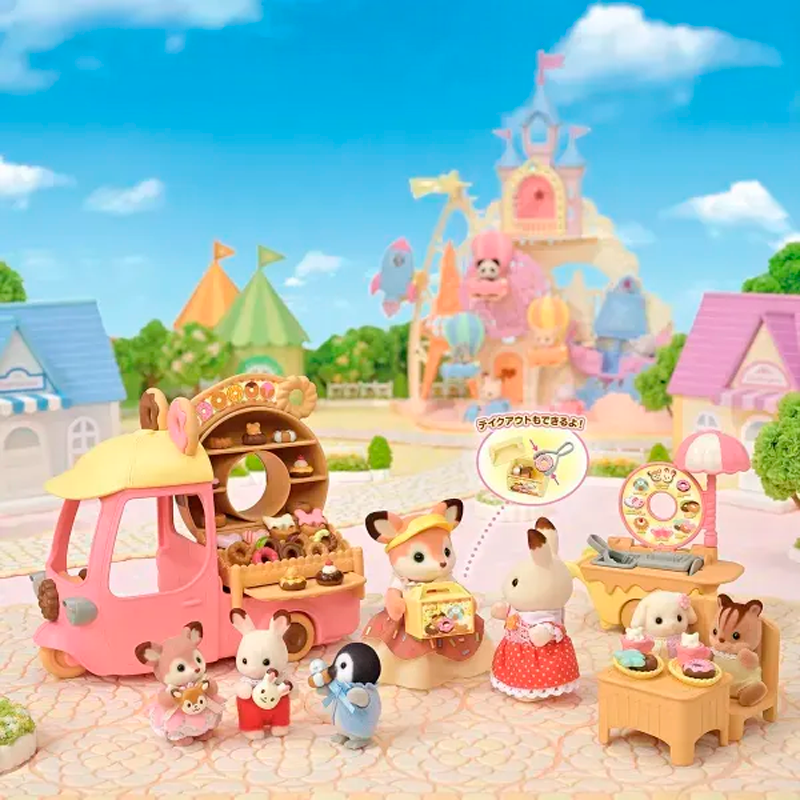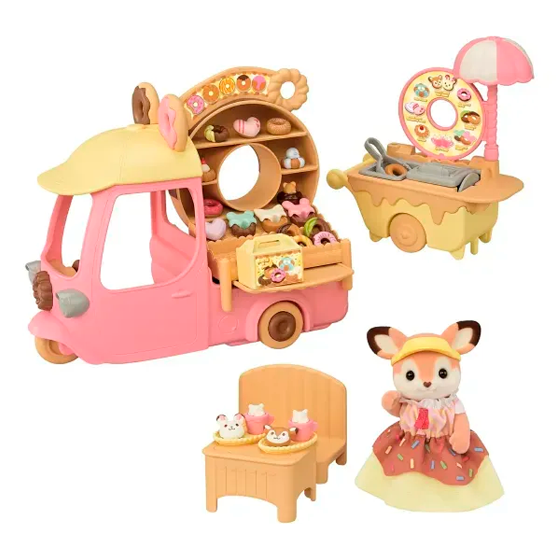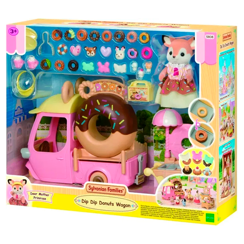 Sumérgete en el encantador mundo de Sylvanian Families con el Playset Furgoneta de Donas 5808. Este atractivo set está diseñado para estimular la imaginación de los niños de 4 a 12 años, ofreciendo horas de juego creativo. La furgoneta, elaborada en plástico duradero, presenta un diseño colorido y detallado que captura la esencia de un auténtico negocio de donas.